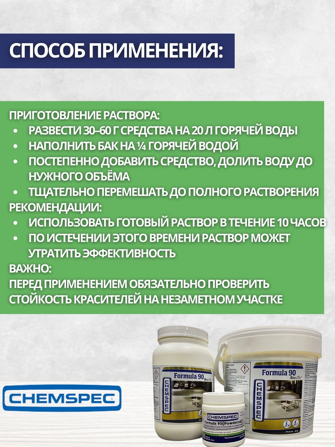 Chemspec: Formula 90 (Формула 90) Powdered 0,5кг. ср-во. для экстракторной чистки (фасовка,тестер)
