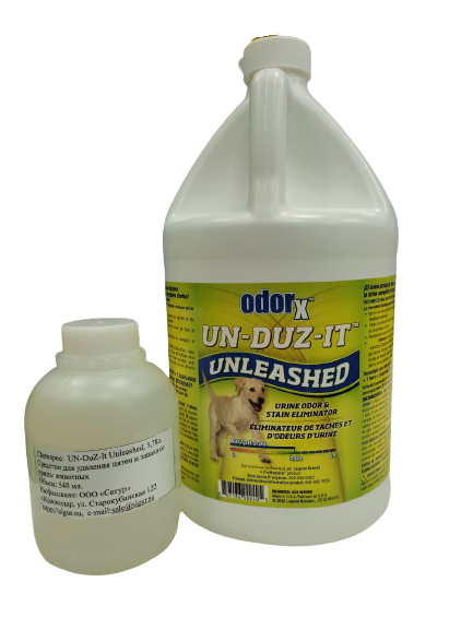 Средство UN-DuZ-It Unleashed обладает комплексным действием. Уникальное, прорывное решение сочетает в себе окислители с энзимами и запахоудалителями для устранения даже самого сильного запаха и пятен от урины домашних животных. Эффективно на большинстве покрытий: коврах, мягкой мебели и на твердых пористых поверхностях.