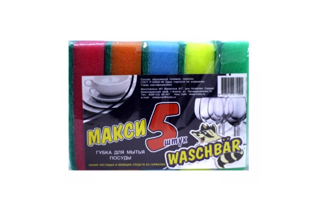 Губка для посуды "Макси-5" 90x60x35мм, 5шт/пач