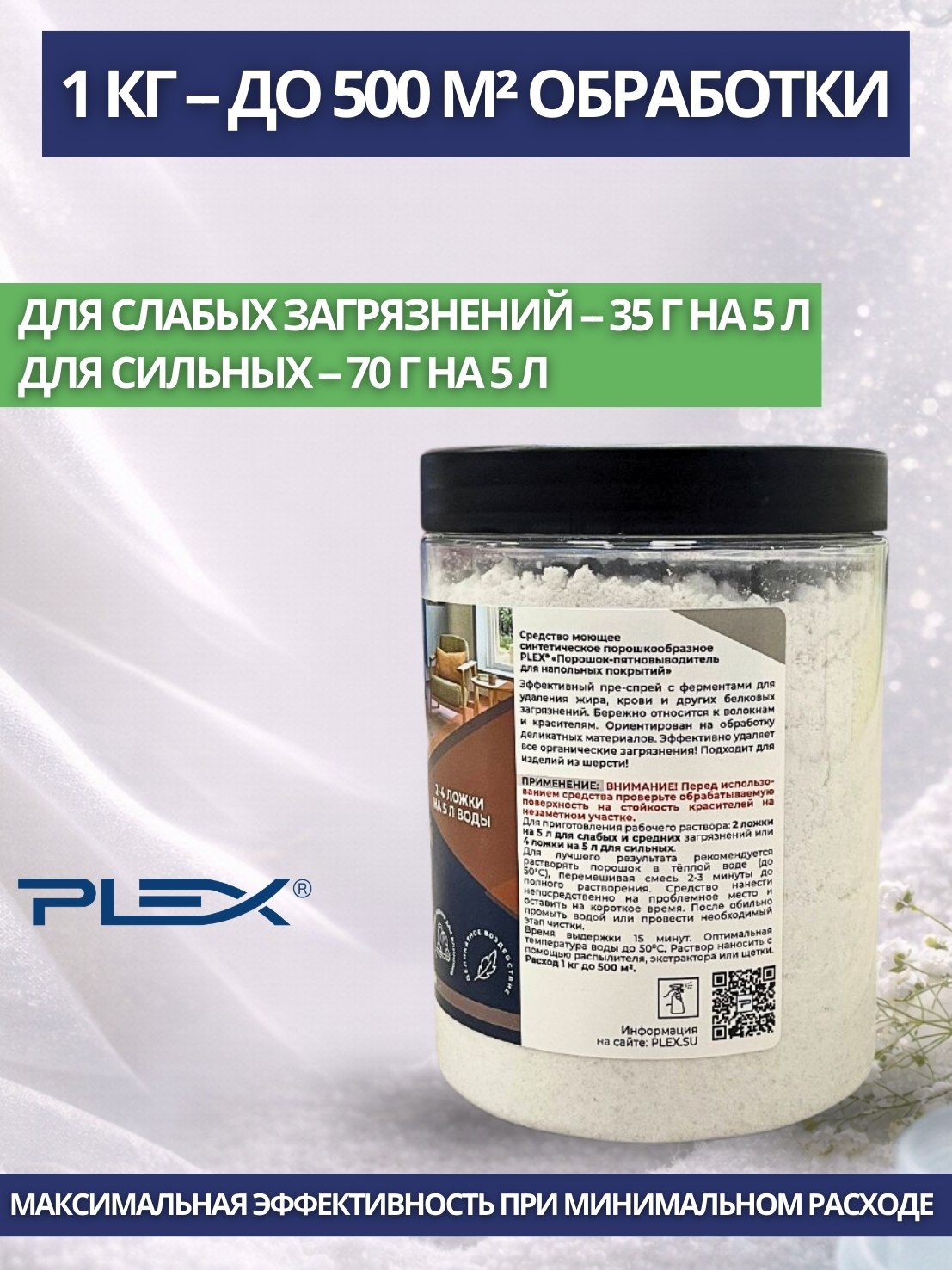 PLEX: 810 Деликатный порошок-преспрей, пятновыводитель 1кг (аналог Chemspec PreKleen)
