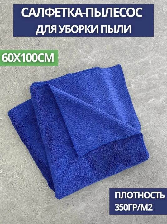 Салфетка-пылесос из микрофибры махра 350гр. 60*100см, синяя